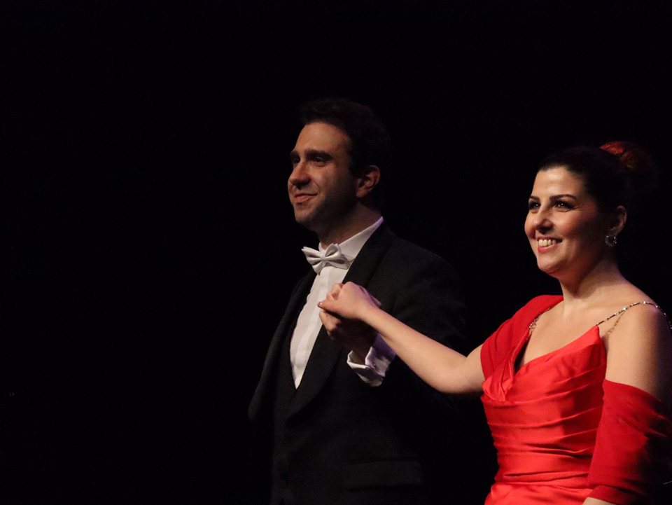 Een dag later verplaatste de feestelijke sfeer zich naar Enschede, waar in de intieme theaterzaal van Concordia het nieuwjaarsconcert plaatsvond. Sopraan Alessandra Cordova en opnieuw Cerofolini zorgden hier voor een sprankelend programma vol Italiaanse charme en levenslust. Cordova verscheen in een elegante rode galajurk, waarmee de toon van de middag meteen feestelijk werd gezet. Haar warme, lyrische sopraan vond een natuurlijke balans tussen expressie en verfijning, terwijl Cerofolini haar met stijlgevoel en flexibiliteit begeleidde. Aria’s van Rossini, Donizetti, Verdi, Puccini en Lehár passeerden de revue, uitgevoerd met flair en gevoel voor belcanto — con eleganza e naturalezza.