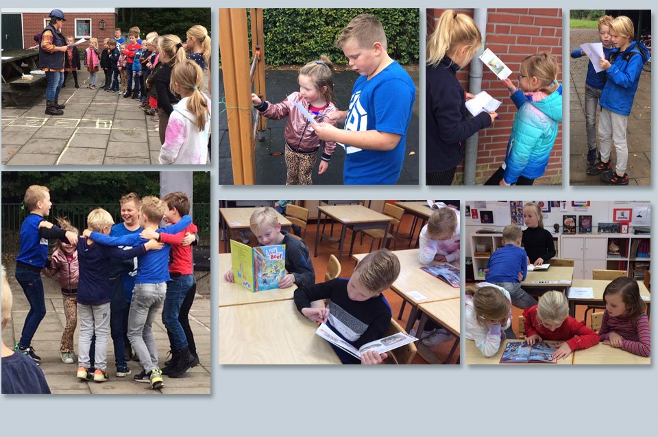 Tijdens de lessen wordt ook aandacht besteed aan de Kinderboekenweek. Deze duurt nog t/m zaterdag 16 oktober. Tevens kunnen de leerkrachten via een site van CPNB bijbehorende lessen downloaden, die goed bruikbaar zijn in de groep. En natuurlijk wordt er voorgelezen uit de schitterende nieuwe informatieve-, prenten-en leesboeken. Daarnaast is er voor alle groepen een leuke wedstrijd (kleurplaten, fotospeurtocht en spreekwoordenquiz), georganiseerd door bibliotheek Dinkelland. Lever deze wel in voor 24 oktober bij de bieb. Lang zullen we lezen!