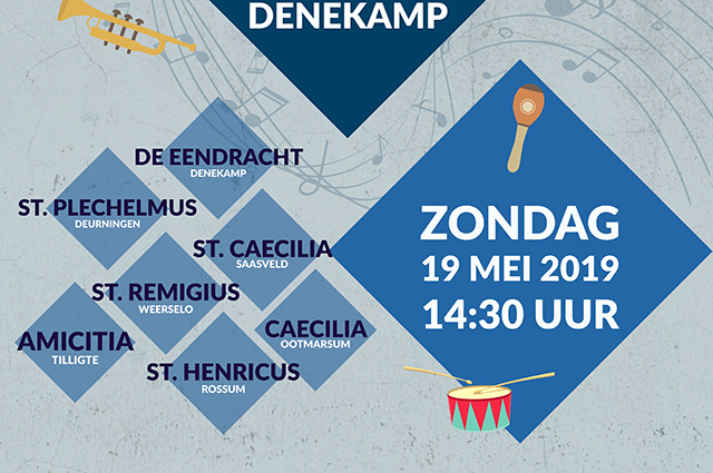 ‘Dinkelmuziek leeft’ vindt plaats op zondag 19 mei op het Nicolaasplein in Denekamp. Het gezamenlijk buitenconcert begint om 14.30 uur en duurt tot ongeveer 16.30 uur.