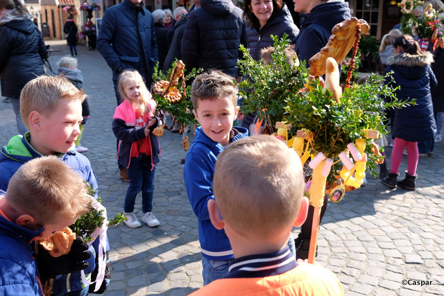 Er waren toch nog 43 deelnemers en samen met ouders en opa’s en oma’s was er een groep van ruim 100 mensen, die door het stadje trok onder begeleiding van de harmonie Caecilia. De route door woonzorgcentrum Franciscus was weer erg geslaagd met veel meezingende oudere Ootmarsummers. Naast Evert Brons liep dit keer voorzanger Eddy Tenniglo mee, die de zieke Henk van der Maas verving. Hij toonde zich een prima vervanger en genoot ook van deze Palmpasenoptocht. “We zijn best tevreden over hoe het dit jaar verlopen is, maar we moeten echter wel nadenken om ook in de toekomst de animo te blijven houden. En daar gaan we de komende periode met de organiserende commissie volop voor inzetten,” vertelt Evert Brons. En natuurlijk een prijsje voor alle deelnemers.